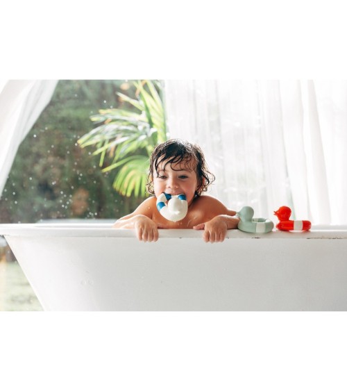 Jouet de bain canard Flo The Floatie Oli&CarolInspiré de la bouée de sauvetage classique, Flo the Floatie est le nouveau petit canard tendance prêt à barboter avec les enfants pendant l'heure du bain !Jouet en caoutchouc 100 % naturel provenant de l'hévéa, l'arbre à caoutchouc. Fabriqué et peint à la main avec des pigments naturels. Chaque pièce étant unique, la forme et la couleur peuvent varier d'un jouet à l'autre. Utilisé comme jouet de dentition, jouet de bain, jouet sensoriel ou objet décoratif ! Doux et souple, facile à saisir et à mâcher. Stimule les sens du bébé et apaise les gencives pendant les poussées dentaires.Totalement hygiénique et antibactérien, sans orifice, pour empêcher la formation de moisissure. Un jouet écologique, sans danger et conforme aux réglementations internationales pour les produits pour enfants. Socialement responsable Oli&Carol apporte son grain de sable en collaborant à divers projets à caractère social.Dimensions10,3 x 7,9 x 6,4 cmComposition / MatièreCaoutchouc 100% naturelEntretien Nettoyez le jouet avec de l'eau, du savon et un chiffon humide. Ne le stérilisez pas et ne le conservez pas au réfrigérateur. Gardez le jouet dans un endroit sec. Comme tout autre produit naturel, il peut moisir s'il est laissé dans un endroit humide pendant de longues périodes. Il est recommandé de le faire sécher à l'air libre entre deux utilisations. Ne laissez pas le jouet en contact direct avec la lumière du soleil ou toute lumière artificielle pendant de longues périodes, car la couleur peut s'estomper. Nos jouets sont 100% naturels, donc les petites imperfections ou incohérences sont normales. Les variations de température peuvent affecter la forme et le volume du produit.NormesEN71, ASTM et Reach.Âge conseillé0+AvertissementRetirez l'emballage et toutes les étiquettes avant de donner le jouet à votre enfant.Vérifiez et nettoyez le produit avant utilisation.