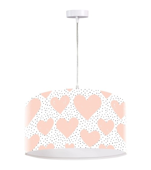 Suspension enfant abat-jour tissu rose et blanc ø 30