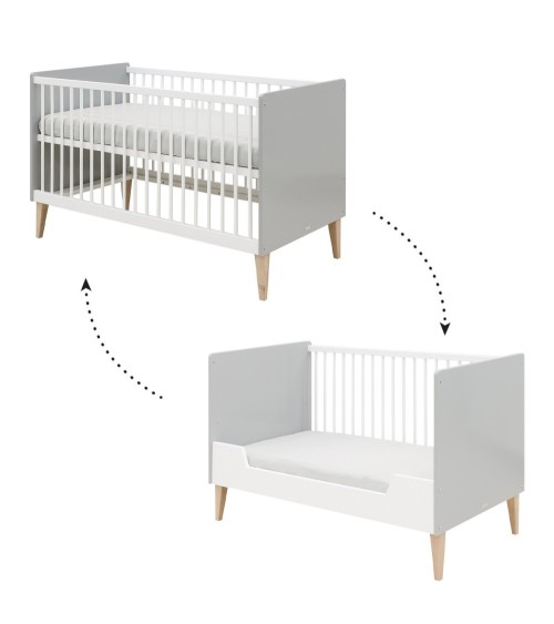 Signé par la marque Bopita, le lit 70x140cm Emma est évolutif. Idéal pour la chambre d'un garçon ou celle d'une fille, ce lit est robuste et esthétique, conçu pour durer dans le temps et accompagner bébé tout au long de sa croissance.Caractéristiques produitMarque : BopitaMeuble blancs et grisPanneaux MDF et bois de hêtreSommier réglable en hauteurMuni de barreaux amovibles permettant de la transformer en lit banquetteLit conforme aux normes européennes de sécuritéPoids net lit évolutif : 38 kgLit évolutif Bopita: 145 x 77 x 90 cmLit évolutif livré sans matelas, avec sommier à monter, avec notice incluse.Produit Bopita garanti 60 Mois.Matelas vendu séparément