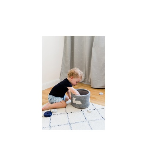 Petit panier de rangement bébé pour table à langer, rond en tissu, grisPanier de rangement en tissu 100% coton rond pour la table à langer, la chambre de bébé ou la salle de bain. Dimensions : 16 cm de hauteur x 22 cm de diamètre Corbeille ronde en tissu pour le rangement des produits de toilette et de soin bébé, couches ou petits accessoires et jouets. Décoration pratique pour chambre bébé ou chambre enfant Différents designs et motifs animaux. Différentes tailles disponibles. Facile dentretien. Convient aussi bien à une fille ou un garçonCertification OEKO-TEX : Matériaux respectueux pour lenvironnement, sans substance nocive et adaptés à lenfantCadeau de naissance ou danniversaire idéal. Emballage soigné : prêt à offrirLe petit panier à rangement bébé rond de Kindsgut est un accessoire essentiel dans la chambre de bébé et en particulier sur la table à langer pour y ranger les couches ou les petits accessoires de soin nécessaires à la toilette et au change de bébé. En 100% coton, cette petite corbeille est rigide et stable sans être dangereuse pour bébé sil la manipule. Dun design enfantin et avec des motifs sur le thème des animaux elle sintégrera parfaitement dans la chambre denfant ou même dans la salle de bain. Nous proposons dans la même collection un panier à linge assorti