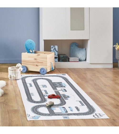 Magnifique tapis circuit pour s'amuser dans sa chambre ! Les enfants adorent le jeu de circuit de voitures, offrez-leurs ce joli tapis illustré, succès garanti avec son très joli imprimé de route de circuit avec ligne de départ, podium et ravitaillement !Informations sur le tapis circuit 70x140 cm :Dimensions : 70 x 140 cmMatière : cotonPoids : 1,2 kg