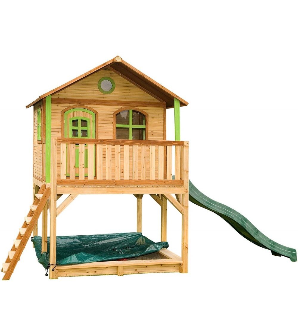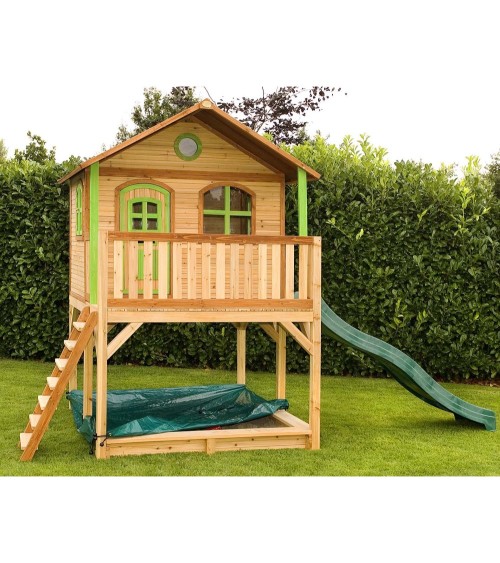 Cabane enfant sur pilotis avec toboggan et bac à sable marc