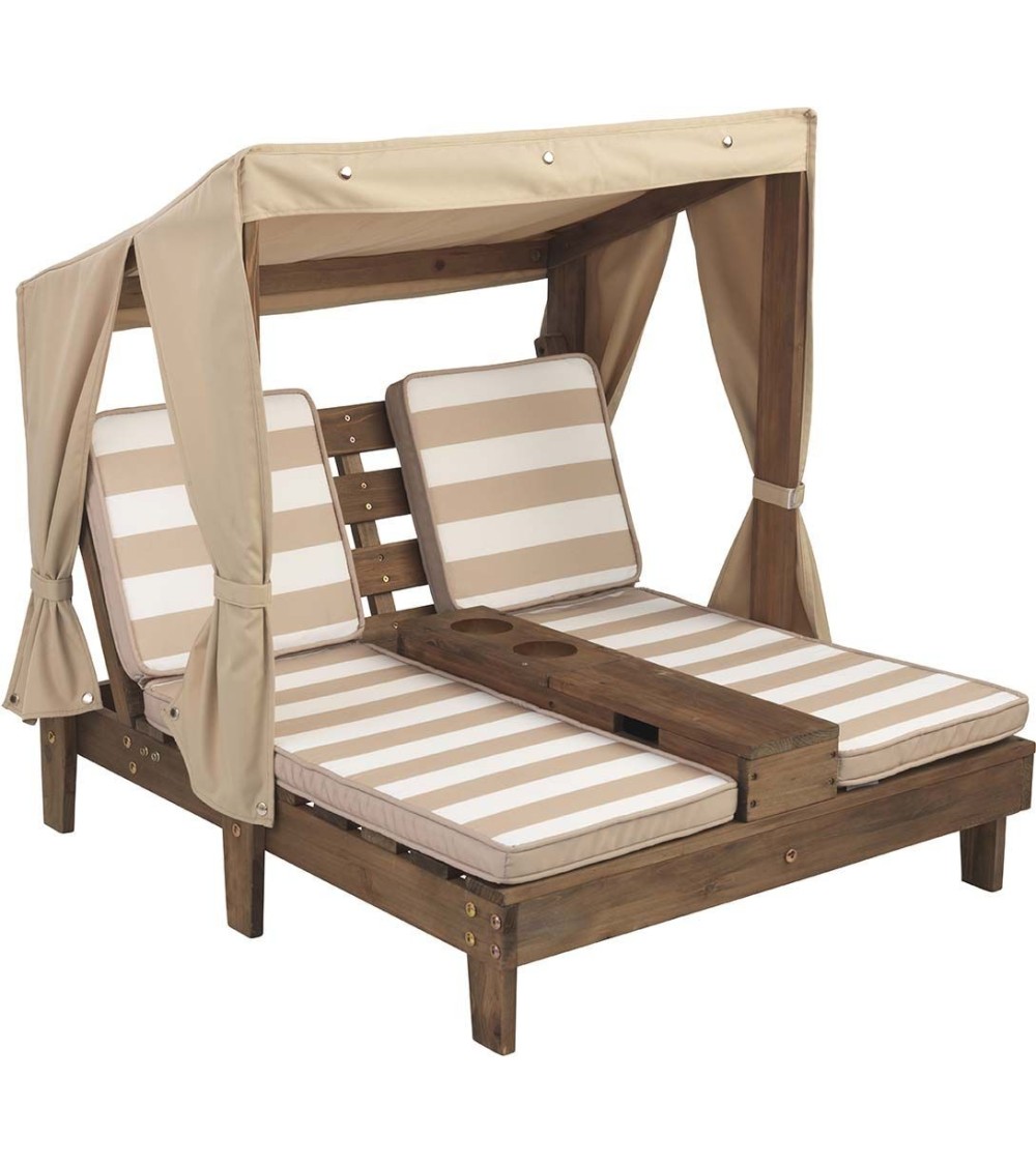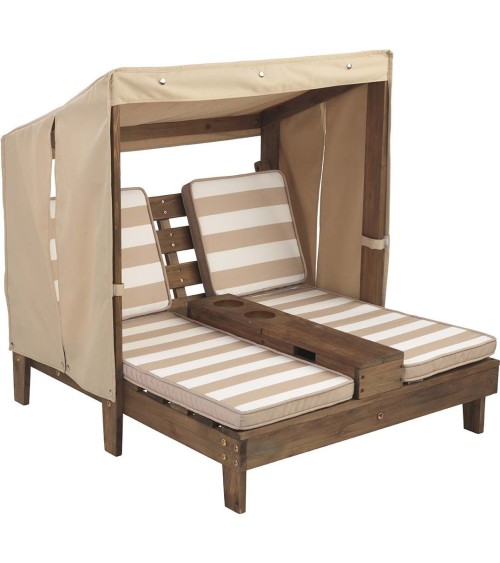 Double chaise longue enfant avec porte-gobelets blanc et beige