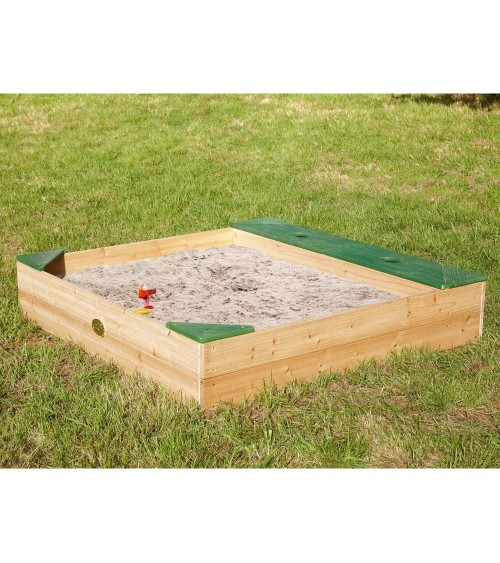 Aspect : Certification : Bois FSCMatériau principal : Bois de HemlockMatériaux secondaires : PolyesterDimensions : Hauteur (en cm) : 117Longueur (en cm) : 118Profondeur (en cm) : 118Autres caractéristiques : Age préconisé : A partir de 18 moisInformations complémentaires : Avec assise et bac de rangement Convient pour environ 225 kg de sable Comprend une bâche de protection Livré en kit : Oui Bac à sable en bois avec rangements et bâche Amy