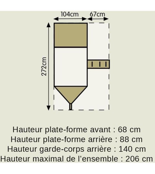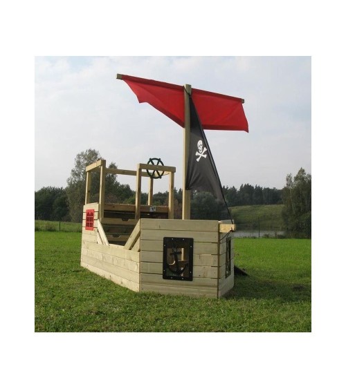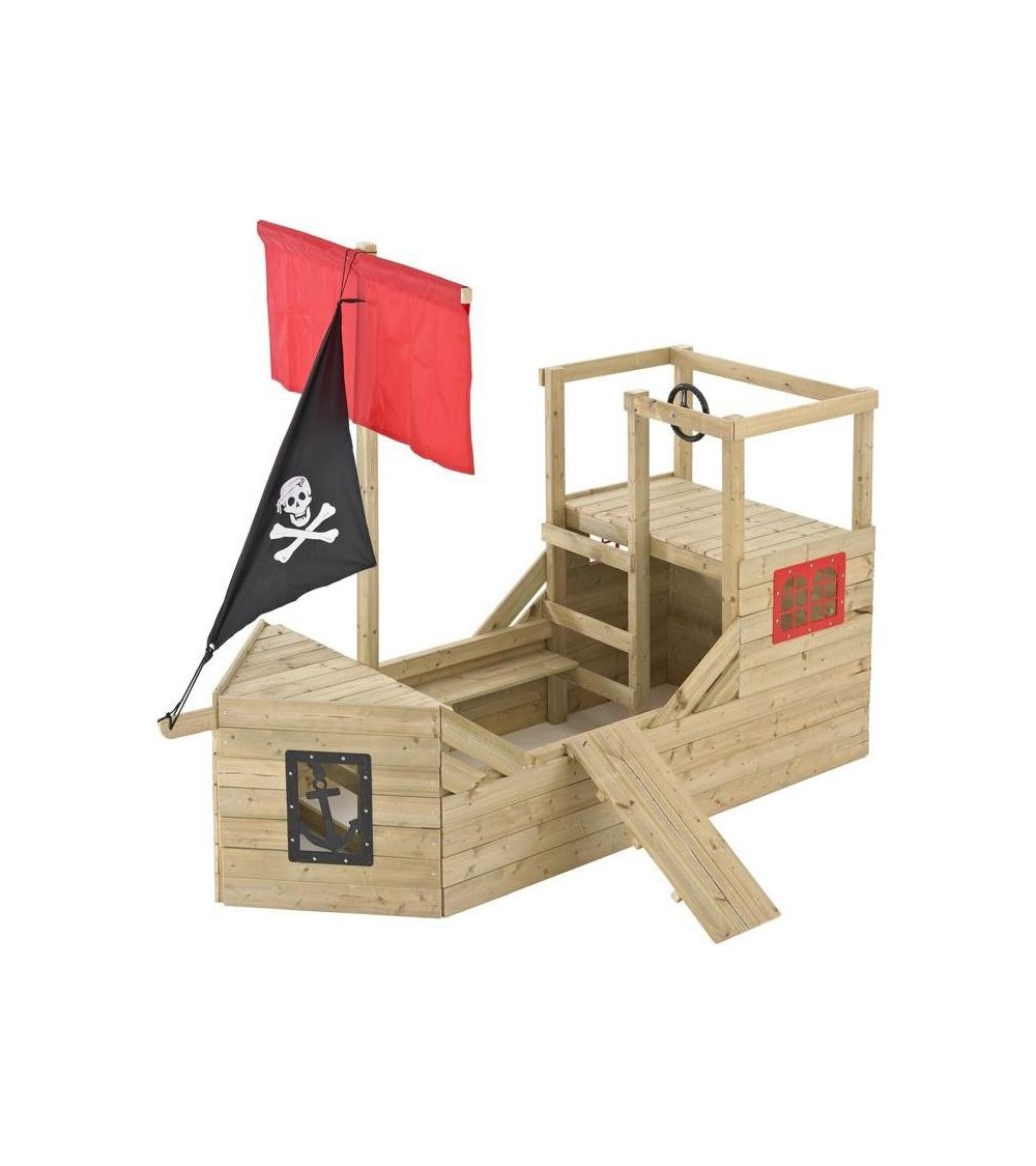 Aspect : Coloris : NaturelFinitions : Traité sous pression pour un traitement en profondeur. Il n'est pas nécessaire d'appliquer une couche sur le bois tous les ans (sauf raisons esthétiques)Matériau principal : Bois d'épicéa (FSC)Matériaux secondaires : PlastiqueAutres dimensions : Encombrement au sol : 272 x 171 cmGarde-corps arrière (Hauteur) : 140 cmPlateforme (Hauteur) : 68 cm à l'avant , 88 cm à l'arrièreDimensions : Hauteur (en cm) : 206,00Longueur (en cm) : 272,00Profondeur (en cm) : 104,00Autres caractéristiques : Age préconisé : A partir de 3 ansComposition : Cabane + voile rouge + drapeau pirate + volantInformations complémentaires : Couvert par une garantie de 5 ans contre la pourriture du bois provoquant une défaillance.Informations de livraison : colis 1 %3D 109x41x15cm 26kg + colis 2 %3D 144x49x20cm 36kg + colis 3 %3D 228x22x15cm 23kgLivré en kit : OuiMontage : 2 adultes : montage estimé en 5 heures Pièces pré forées pour faciliter l'assemblage A installer directement sur le gazon ou écorce de bois Normes : Testé selon la norme EN71 applicable aux produits utilisés dans un cadre familial.Poids (en kg) : 85,00Poids maximum de l'utilisateur (en kg) : 150,00 En bois d'épicéa FSC traité écologiquement garanti 5 ansConstruction durable, aucun traitement supplémentaire à effectuerRépond aux normes EN71 pour usage familialPlusieurs espaces de jeux : plateformes, cachettes...Longueur 272 cm , Largeur 104 cm (+67 cm) , Hauteur 206 cm