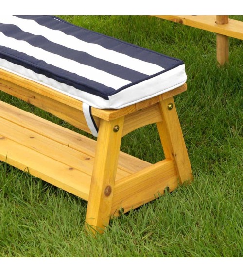 Aspect : Matériau principal : Bois de SanmuMatériaux secondaires : Tissu Polyester Dimensions de la table : Hauteur (en cm) : 48,00Longueur (en cm) : 107,00Profondeur (en cm) : 58,00Dimensions du banc : Hauteur (en cm) : 33,00Longueur (en cm) : 91,00Profondeur (en cm) : 30,00Dimensions du parasol : Hauteur (en cm) : 154,00Autres caractéristiques : A monter : OuiAge préconisé : A partir de 3 ansAssemblage : Notice d'assemblage détaillée étape par étapeComposition : 1 table 2 bancs 2 coussins 1 parasol Informations complémentaires : Robuste Bois résistant aux intempéries Le + produit : Parasol assorti aux coussins des bancs Espace de rangement sous chaque banc Le parasol surélevé abrite les enfants des rayons UV Poids (en kg) : 18,00 Ensemble table et bancs d'extérieur avec parasol