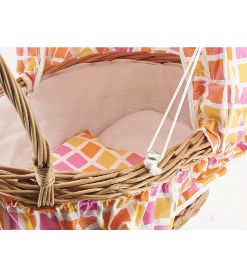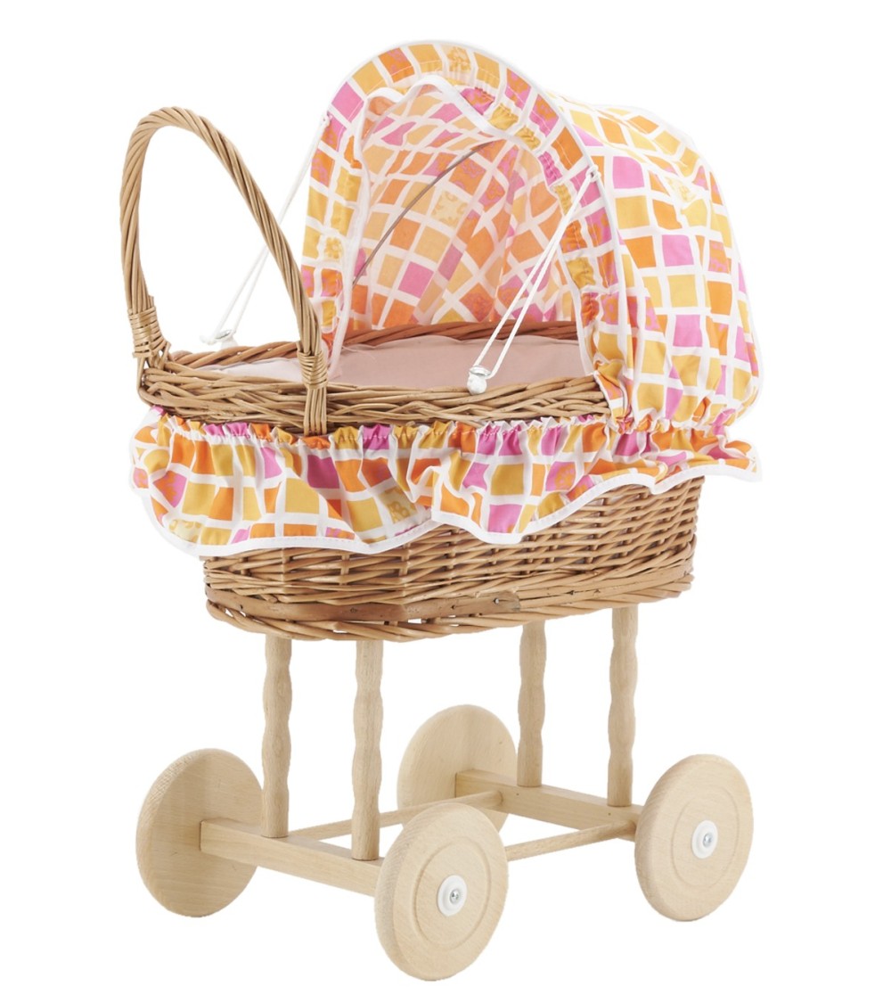 Aspect : Matériau principal : Osier buffMatériaux secondaires : BoisDimensions : Hauteur de la anse (en cm) : 52,00Longueur (en cm) : 43,00Profondeur (en cm) : 27,00Autres caractéristiques : Composition : Un landau + un couffin avec un édredon et un oreillerLivré monté : OuiPoids (en kg) : 1 Berceau de poupéeLandau en osier buff, chariot et roues en boisCouffin intérieur avec oreiller et édredon garnis 100% coton Tissu avec motif à carreaux jaune, rose et orange Longueur 43 cm , Largeur 27 cm , Hauteur 52 cm