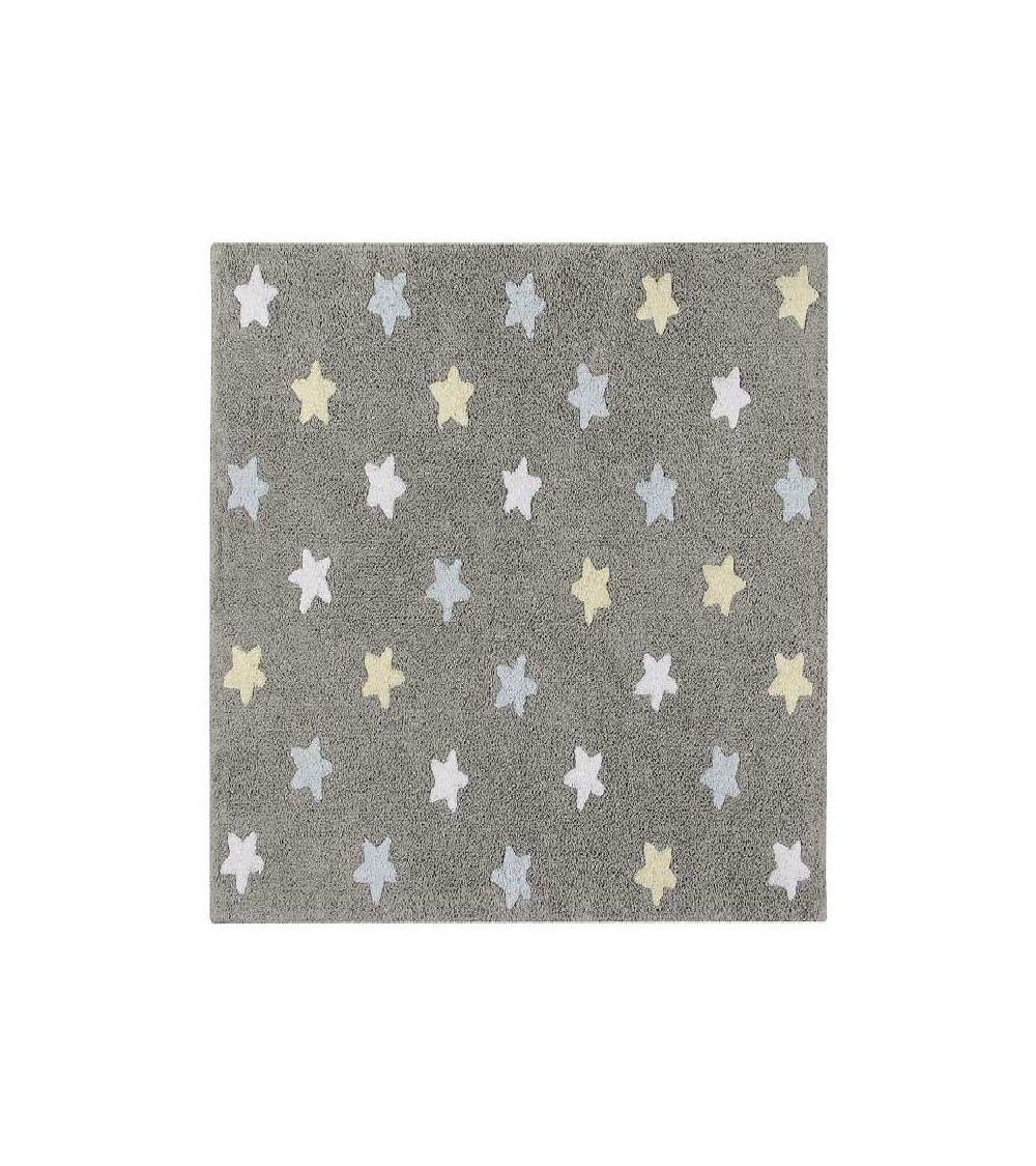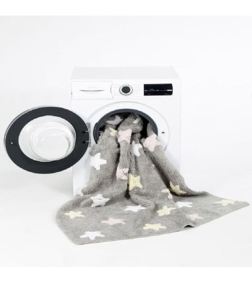 Tapis motif étoile - multicolor - 120 x 160. Parfait dans votre intérieur ou pour une chambre d'enfant, ce joli tapis 100% coton est confortable et esthétique. Le plus de ce tapis : il est lavable en machine ! Ce tapis est fait à la main en Espagne.. Livrable sous 1 ou 2 semaines. Dimensions du tapis : 120 x 160 cm