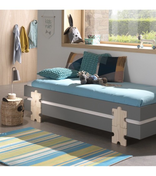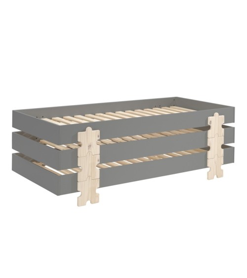 Signé par la marque Vipack, ce lot de 3 lits empilables provient de la collection Modulo. Empilables grâce à ces petits pieds en forme de puzzle, ces lits sont très pratiques pour optimiser l'espace dans la chambre de votre bambin.Caractéristiques produitMarque : VipackLit 90x200 : Panneaux MDF et pin massifLit 90x200 - GrisLot de 3 litsDès l'âge de 4 ansSommier inclusPoids maximum recommandé : 75kgHauteur de matelas recommandé : 16 cmPoids du lot : 73 kgLit 90x200 : 203.5 x 94 x 68.5 cmDimensions couchage : 90 x 200 cmLot de lits empilables 90x200 livré, avec sommier, sans matelas à monter, avec notice incluse.Produit Vipack garanti 24 Mois.Pieds en forme de puzzleMatelas vendu séparément