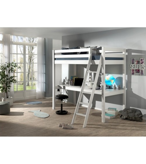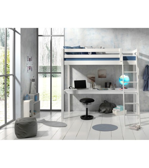 Lit mezzanine 90x200 sommier inclus bureau blanc