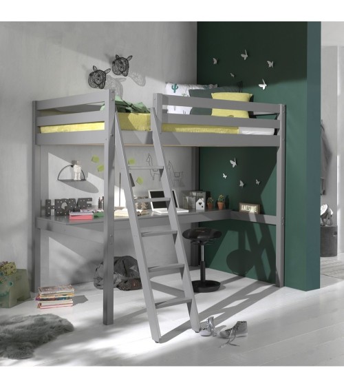 Le lit mezzanine 90x200 Pino imaginé par la marque Vipack est pratique et permettra de gagner de la place dans la chambre de votre enfant.Caractéristiques produitMarque : VipackGamme : PinoMatériaux : Pin ScandinaveCouleur : GrisProduit : Lit Mezzanine 140x200 cm1 sommier inclusA partir de 6 ansÉchelle inclinéeL'échelle peut être montée à gauche et à droiteHauteur 190cmPoids : 57.7 kgDimensions : 209.4 x 214.7 x 190 cmDimensions couchage : 140x200 cmProduit : BureauBureau : 21 kgBureau : 209.4 x 69 x 75Intégré au lit mezzanineGarantie : 24 moisMatelas vendu séparément