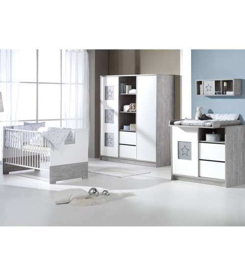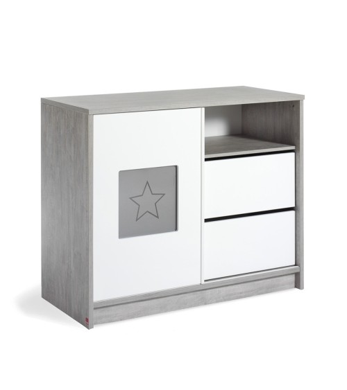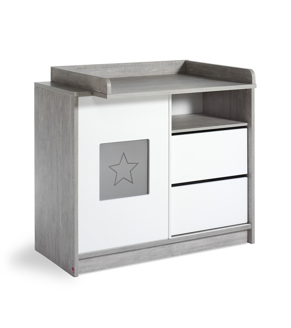 La marque Schardt propose des meubles de fabrication Allemande pour aménager la chambre de votre enfant. Marque : Schardt - FABRICATION ALLEMANDE - Gamme : Abby - Matériaux : Panneaux MDF - Peinture à base d'eau - Couleur : Blanc et gris - Produit : Commode - 1 porte coulissante - 2 tiroirs - 1 niche - Plan à langer compatible inclus - Produit : Plan à langer - Amovible - Rebords de protection - Poids et dimensions commode : 68 kg - 113 x 54 x 93 cm - Poids et dimensions plan à langer : 7,8 kg - 85 x 75 cm - Garantie : 24 mois - Conditionnement Commode à langer Schardt, livrés, avec plan à langer, à monter, avec notice incluse.