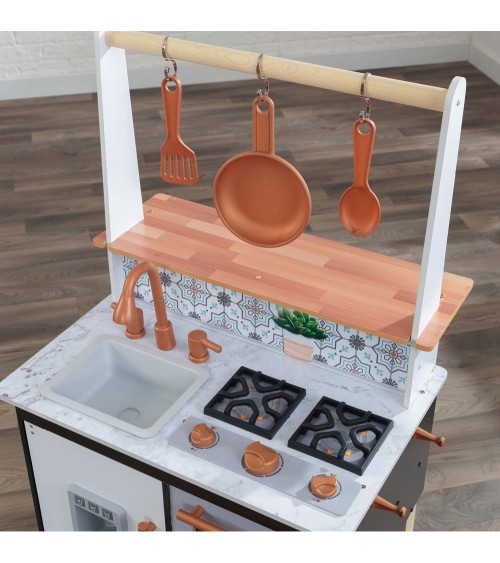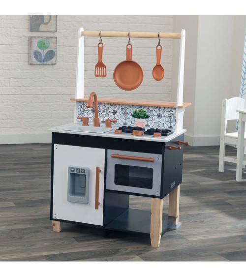 Aspect : Coloris : NoirMatériau principal : MDFMatériaux secondaires : Bois massif Plastique Acier Dimensions : Hauteur (en cm) : 69,09Longueur (en cm) : 59,99Profondeur (en cm) : 49,61Autres caractéristiques : Accessoires : Avec une poêle - une spatule et une cuillèreAge préconisé : 2-5 ansInformations complémentaires : Ouverture/fermeture des portes du micro-ondes - du réfrigérateur et du four Crochets sur les côtés Machine à glaçons avec 3 glaçons factices Robinet avec boutons qui se tournent Montage : Instructions d'assemblage détailléesPoids (en kg) : 12,30 Cuisine enfant artisan Island
