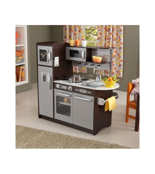 Aspect : Matériau principal : Bois MdfMatériaux secondaires : Bois massif Plastique Dimensions : Hauteur (en cm) : 104,10Longueur (en cm) : 109,20Profondeur (en cm) : 45,10Autres caractéristiques : Age préconisé : De 3 à 8 ansInformations complémentaires : Les portes du réfrigérateur, congélateur, four et lave-vaisselle s'ouvrent et se ferment. Téléphone sans fil. Porte essuie-tout. Tableau noir sur le congélateur. Évier amovible. Espace de rangement pratique au-dessus de l'évier. Award du meilleur jouet de l'année 2016 au salon de NewYork.Livré en kit : OuiMontage : Instructions détaillées pour l'assemblage étape par étape.Poids (en kg) : 34,00 Cuisine pour enfantEn BoisModèle Expresso