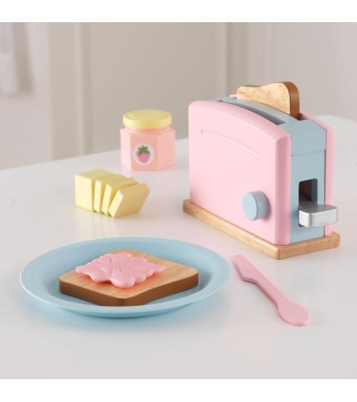 Aspect : Coloris : PastelMatériau principal : Bois MdfMatériaux secondaires : PlastiqueDimensions : Hauteur (en cm) : 15,20Longueur (en cm) : 17,80Profondeur (en cm) : 7,60Autres caractéristiques : Age préconisé : A partir de 3 ansComposition : 1 grille-pain + 1 assiette + 1 couteau + 1 beurre en tranches + 2 tartines + 1 confiturePoids (en kg) : 0,90 Ce set grille pain en bois avec accessoires signé KidKraft est dédié aux enfants appréciant la cuisine...