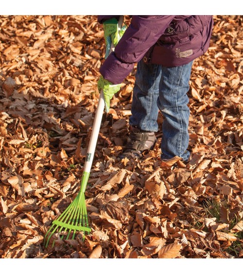 Aspect : Coloris : VertMatériau principal : Zinc (Outil)Matériaux secondaires : Bois de Schima (manche)Dimensions : Largeur max (en cm) : 18Longueur (en cm) : 83,50Autres caractéristiques : Avertissement : Déconseillé aux enfants de moins de 3 ans. Bien lire la notice avant utilisationPoids (en kg) : 0,26 Râteau à feuillesEn Zinc vert et Bois(L)83.5x(l)18cm