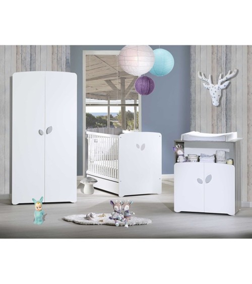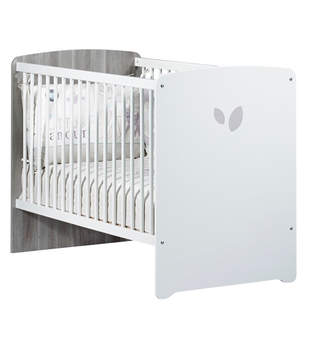 Lit bébé 120x60 têtes panneaux non transformable. Une collection mixte qui s'affiche nature et tendance, aux tons chêne silex et blanc.Détails du produit :Panneau de fibres de moyenne densité (MDF) laqué blanc avec sérigraphie ''feuille'' gris fuméPanneau de particules décor papier chêne silexGaleries en hêtre laquées blancSommier hêtre.Dimensions en cm : L 123 x l 68 x H 90cmNormes et qualité :2 galeries fixes, sommier réglable en hauteur 3 positionsGaranti sans solvantPanneaux garantis avec une teneur en formaldéhydes <8mgFabrication Française, hormis galeries et sommier fabrication EuropeConforme à la norme NF EN 716 n1 & 2 (2008) + A1 février 2013Conseils d'entretien :Dépoussiérage chiffon sec : ni alcool, ni solvant.Tâches rebelles : éponge légèrement humide.