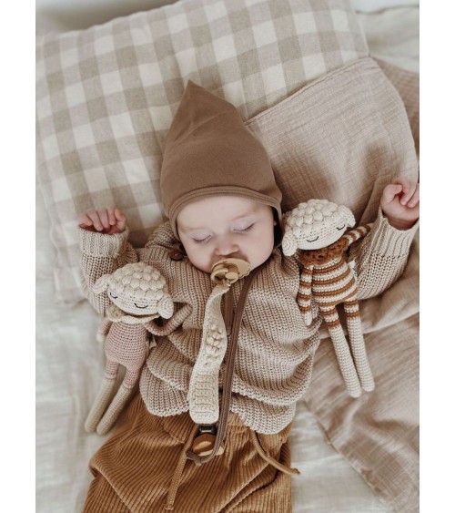 Attache-sucette en crochet Patti OsloPour ne pas perdre la sucette préférée de bébé choisissez cette jolie attache-sucette en crochet.Un design classique dans des couleurs tendances !Chaque article est livré dans un joli petit sac en coton, c'est le cadeau idéal pour une naissance !PATTI OSLO est une marque norvégienne qui propose des jouets et accessoires entièrement crochetés et brodés à la main. Tous les produits sont fabriqués en coton bio par des femmes artisanes indépendantes qui utilisent des techniques traditionnelles.En choisissant les produits Patti Oslo vous contribuez à donner un revenu équitable à ces femmes talentueuses.Fabriqués éthiquement en Turquie.Dimensions23 cmComposition / MatièreFabriqué en coton bio certifié GOTS, teint naturellement à base de plantes, antibactérien et hypoallergénique.Coeur en bois d'érable.EntretienUtilisez toujours un détergent doux et de l'eau froide pour nettoyer les taches.Faire sécher à plat.NormesConforme à la norme EN-71Âge conseillé0+AvertissementRetirez l'emballage et toutes les étiquettes avant utilisationVérifiez et nettoyez le produit avant de le donner à votre enfant.