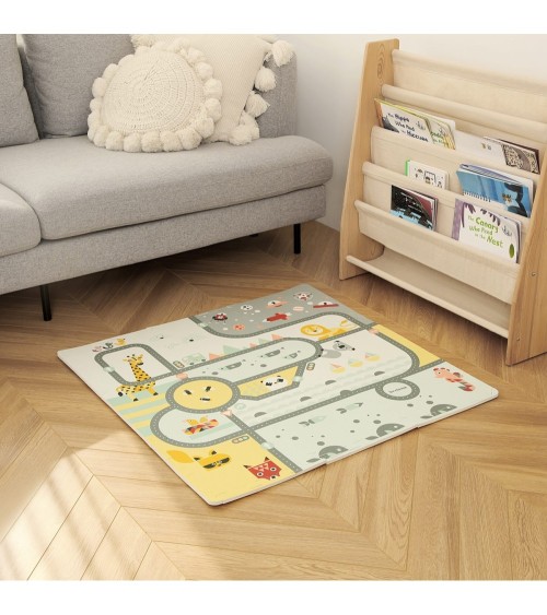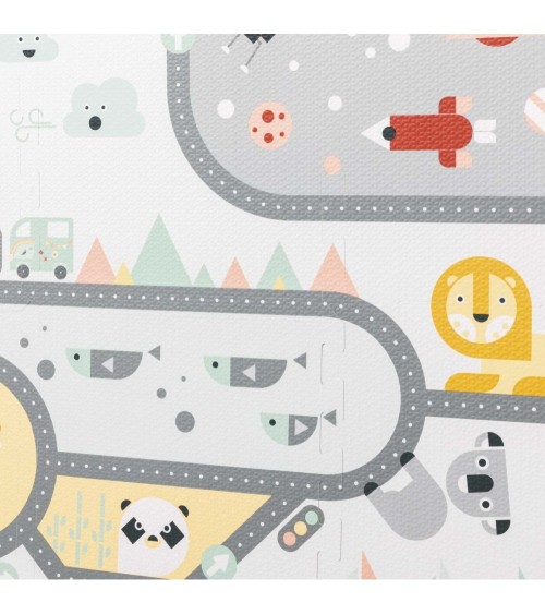 Le tapis d'exploration carré est un élément idéal et confortable sur lequel les petits peuvent s'asseoir et s'allonger pendant qu'ils jouent et s'amusent. C'est aussi un bel élément décoratif qui égayera n'importe quel coin.Son design unique, inspiré d'un puzzle, présente l'empreinte d'une route pour que les petits puissent jouer avec, tout en étant totalement protégés et à l'abri du sol.Il est fabriqué en vinyle, une alternative sûre au PVC qui ne contient pas de substances nocives, pour un produit résistant et 100% non toxique.Qu'apprenons-nous ?Le développement sensoriel : il est fondamental pendant les premières années de la vie. Lorsque les petits mettent leurs cinq sens à l'épreuve, ils apprennent à mieux connaître leur environnement et à mieux s'y adapter. Ils commenceront également à développer leurs goûts et leurs préférences.Autonomie : Les tapis créent un espace à part entière pour développer l'autonomie des enfants. Un environnement chaleureux, confortable, stimulant et sûr qui devient un espace de jeu à part entière. Les tapis sont amusants, ils leur permettent de jouer sur le sol et en même temps ils apprennent le contenu du tapis lui-même.Créativité : C'est un jouet très bénéfique car il stimule leur créativité, en inventant des situations et des solutions différentes, en encourageant le langage et la socialisation.L'imagination : Le tapis devient un espace de jeux symboliques qui permet aux enfants de se transformer et de créer d'autres mondes, où ils peuvent créer et imaginer. Où se retrouver soi-même et ses propres règles, où imaginer...