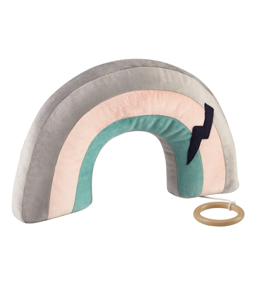 Joli arc en ciel tout doux en velours esprit seventies pour accompagner bébé. Livrée dans sa jolie boîte cadeau, une boite à musique originale et tendance ! Fonctionne sans pile. Fabrication française