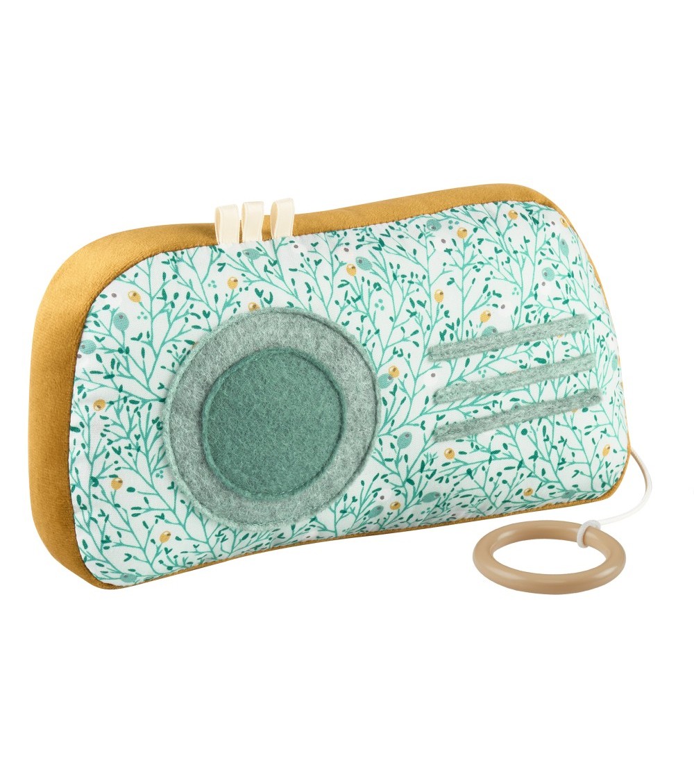 Radio vintage imprimé floral et velours pour accompagner bébé, enfin une boîte à musique tendance et original. Avec ses différentes matières bébé développera son toucher. Fonctionne sans pile. Livrée dans sa jolie boîte cadeau. Fabrication française