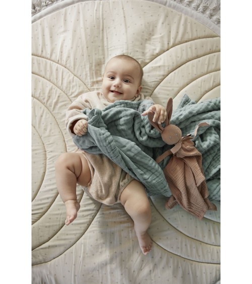 Doudou plat Elodie DetailsDoudou plat en forme de lapin fabriqué à partir de fibres de coton mousseline. Avec sa taille parfaite, on l'emmène partout et il devient vite LE doudou favori des plus petits!Chacun se distingue par de mignons petits détails.Dimensions45 cm de longComposition / Matière100% cotonRemplissage de la tête : 100% polyesterEntretienLavage à 30°CNormesOeko-TexEN-71Âge conseillé0 mois