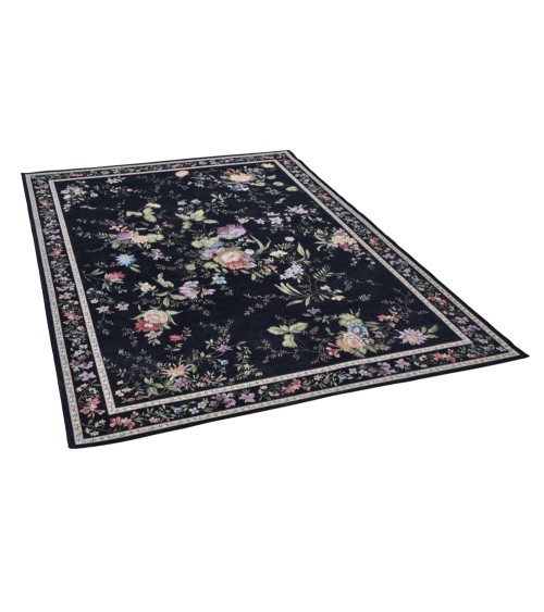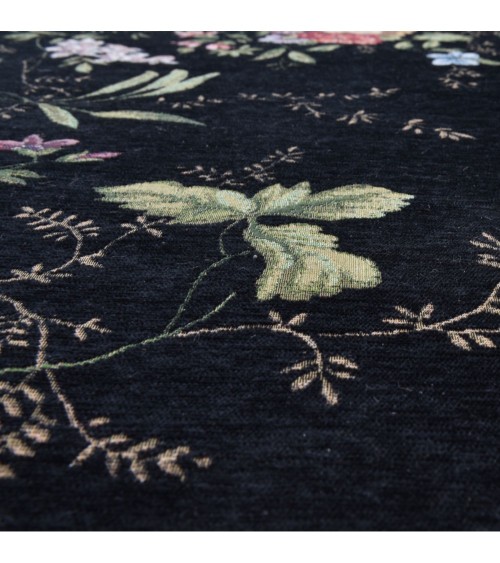 Tapis floral tissé plat - noir 60x90 cm