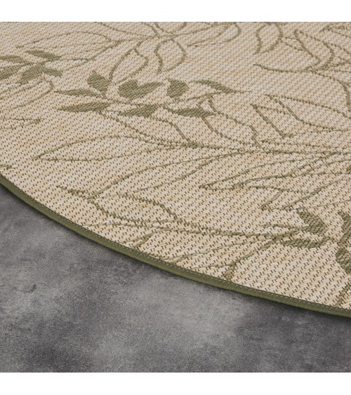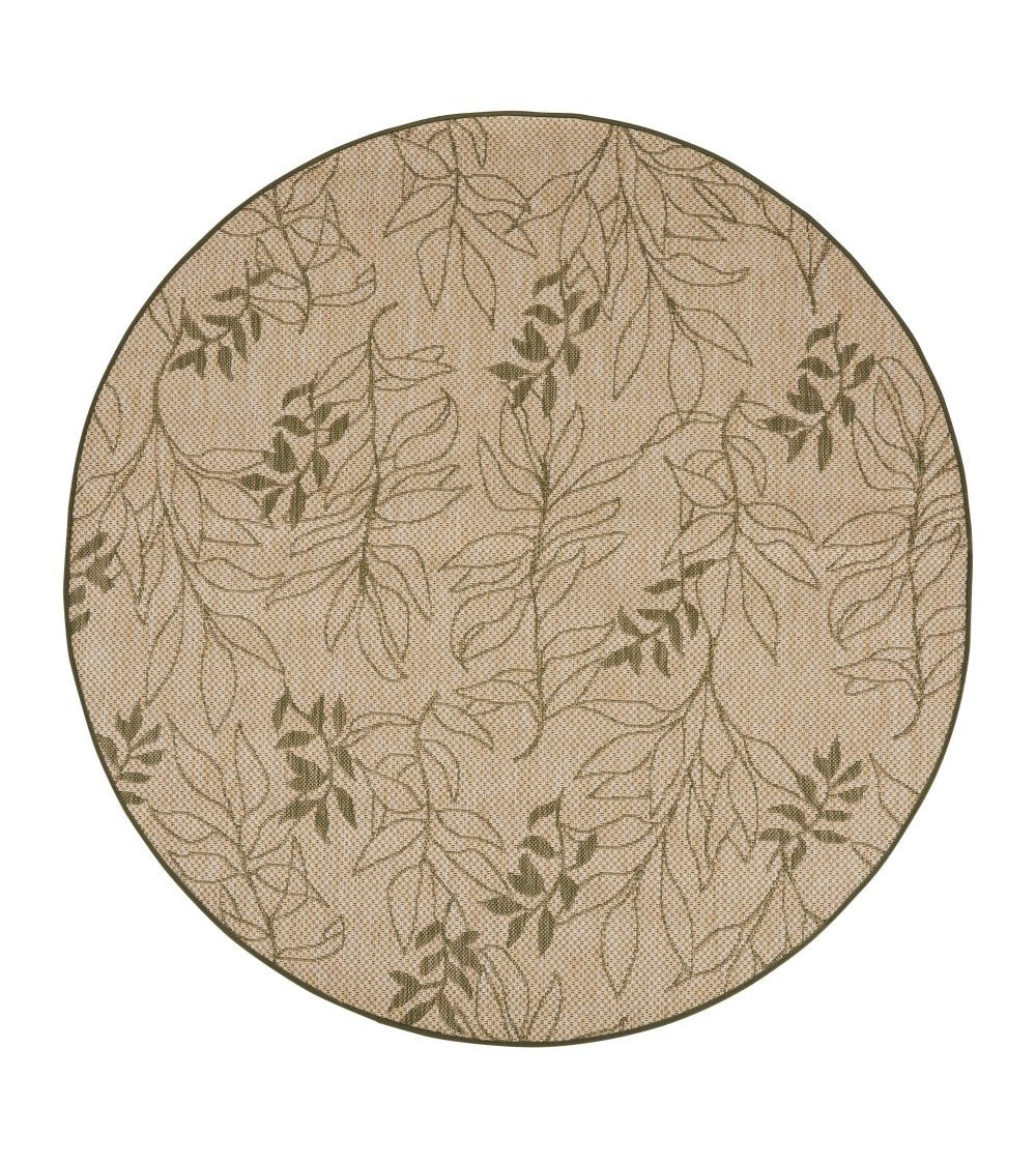 Tapis rond en polypropylène motif végétal beige et vert kaki 160x160