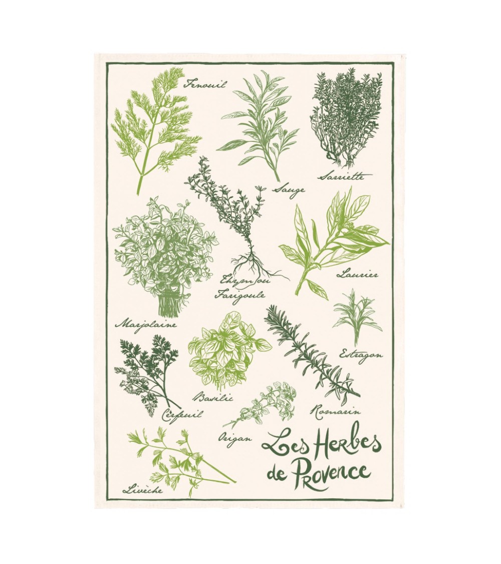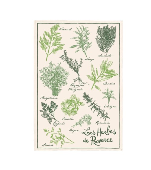 Torchon les herbes de provence en coton écru 48 x 72