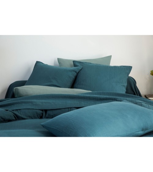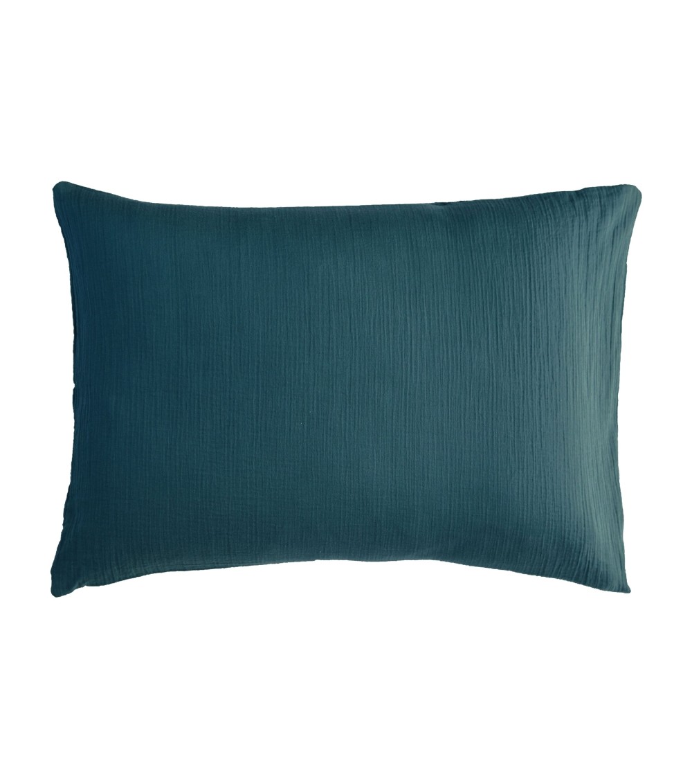 En quête de douceur ? Choisissez DOUBLE GAZE Taie d'oreiller coton bleu 50x70 pour sa douceur exemplaire, sa légèreté indéniable et son repassage facultatif. Une taie doreiller rectangulaire en double gaze de coton, joliment froissée, pour un aspect des plus naturel. Cette taie forme sac en double gaze de coton est lavable à 60 degré.
