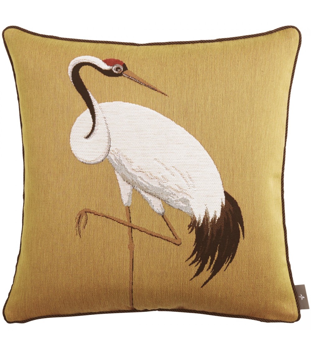 Coussin tapisserie une grue blanche Jaune 50 x 50