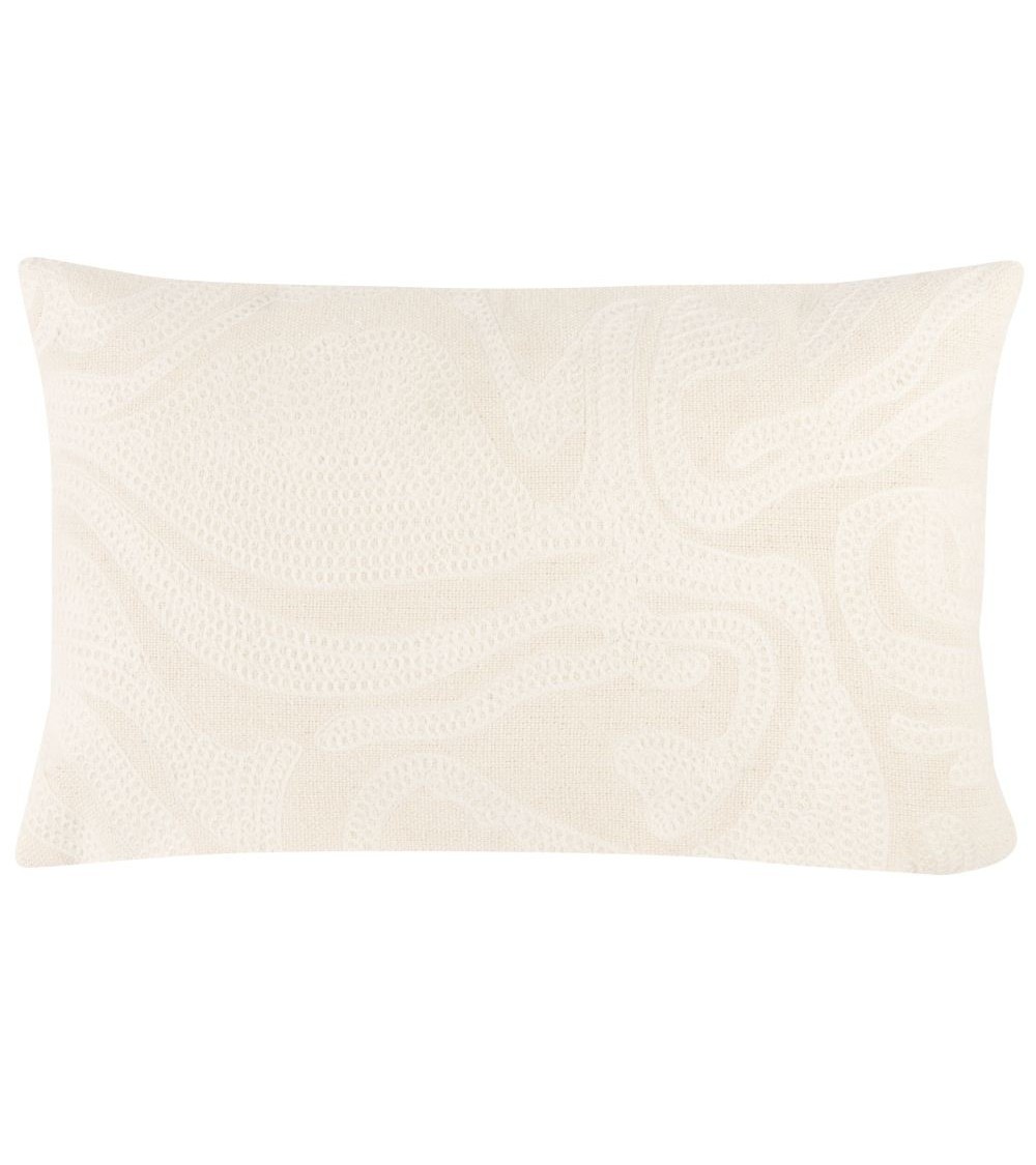 Housse de coussin en coton recyclé tissé à motifs brodés blancs et gris 30x50
