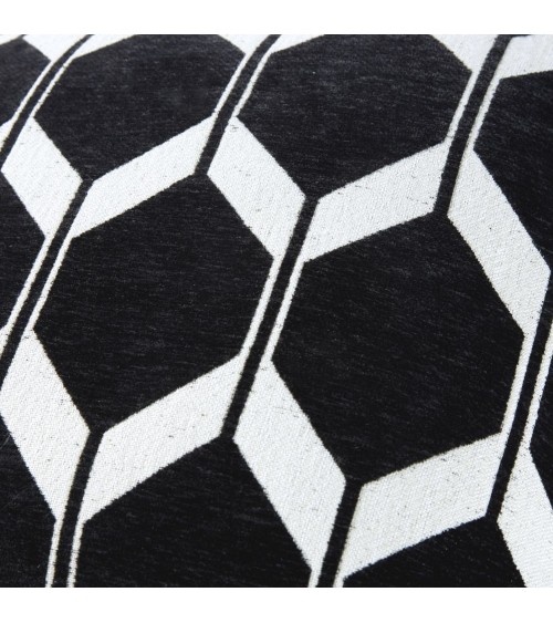 Coussin en velours tissé jacquard motifs graphiques noirs et écrus 45x45, OEKO-TEX®