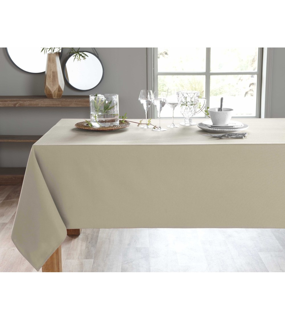 Offrez.vous LONA . Nappe en coton beige 235x235, cette jolie nappe en coton traitée antitache aussi pratique qu'esthétique ! Une nappe en coton 210 g/m², lavable à 30 degré, idéale pour un usage au quotidien, car vite lavée, elle sèche rapidement ! Cette nappe à la finition ourlée a subi un traitement Téflon® antitache et déperlant et se nettoie en un coup d'éponge - les salissures sèches peuvent être facilement brossées. Une qualité Lauréat by Becquet . Satisfait ou remboursé 3 ans.
