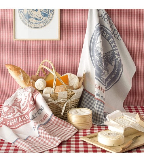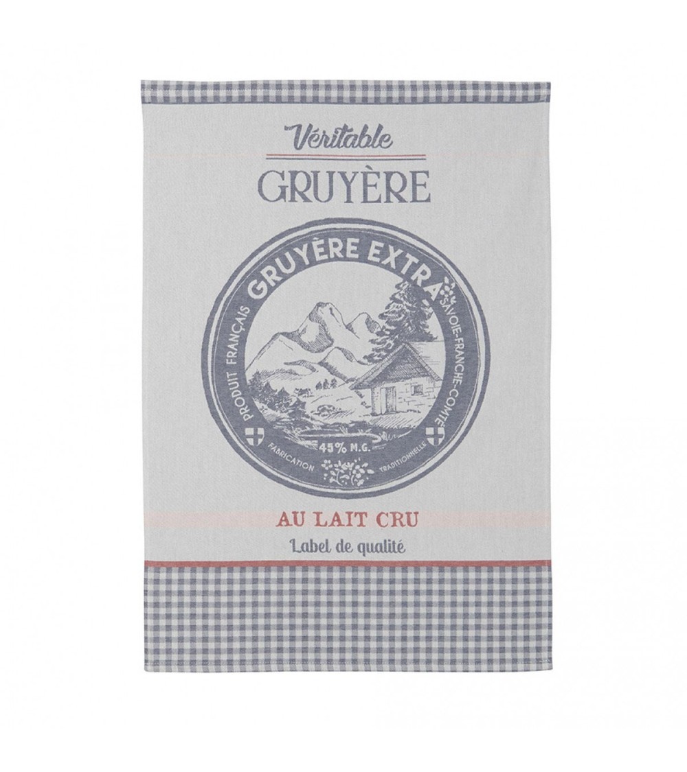 Torchon de cuisine, en jacquard de coton orné d'un gruyère sur un fond gris, pour une ambiance delices salés.