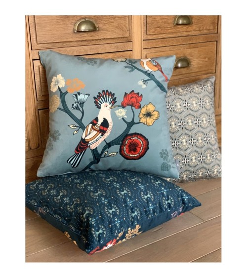 Housse de coussin imprimé les oiseaux made in france foncé 47x47