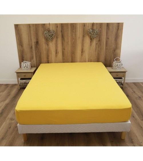 Drap housse jersey extensible en coton jaune or 120x190 cm