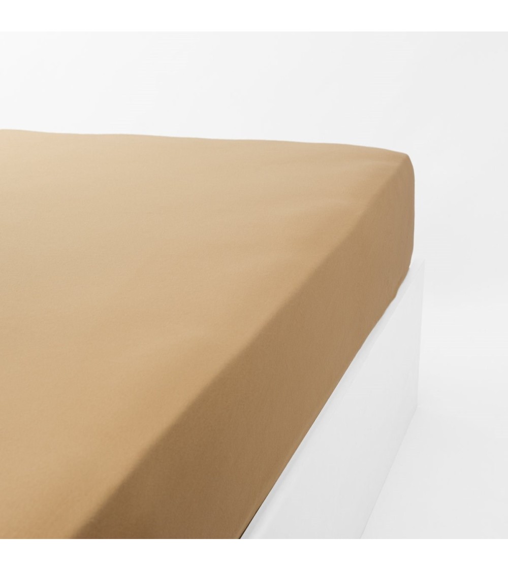 Drap housse jersey extensible en coton caramel 140x200 cm