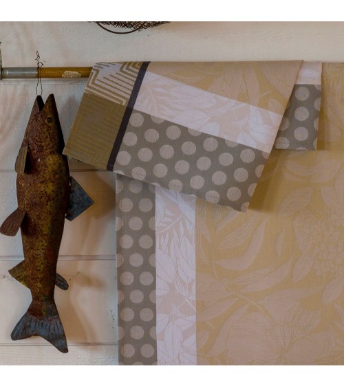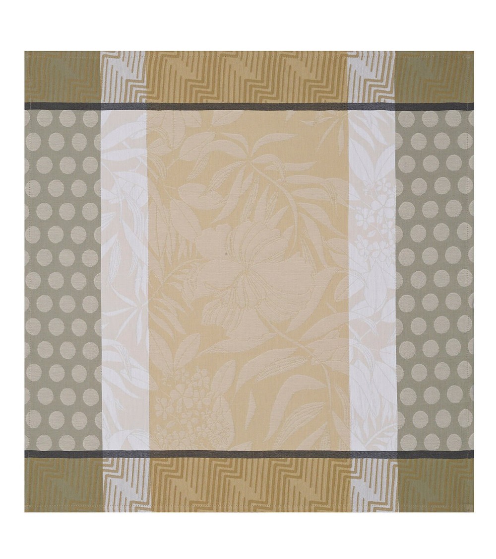 Thème iconique de notre maison, la nature se réinvente cette année avec une touche de fantaisie. Nature Urbaine célèbre la végétation renaissante et diffuse l'énergie et l'allégresse du printemps. Fleurs et feuilles luxuriantes envahissent les tables et les terrasses pour profiter de la douceur des beaux jours. Une collection placée sous le signe du mélange foisonnant de motifs floraux et géométriques, avec des effets 3D pour un résultat résolument dynamique.Une coloration résolument douce en camaieu de neutres - beige sésame, sucre blanc et muscade se combinent pour une collection toute en finesse.Avec leur décor coordonné, les serviettes Nature Urbaine complètent harmonieusement la décoration de votre table. Leurs couleurs et motifs délicats traverserons les époques sans perdre leurs éclats grâce à la qualité de nos fils.Nos produits sont tissés en 100 pour cent coton, peigné longues fibres, pour vous garantir une qualité supérieure. Les fibres les plus longues produisent un linge au toucher doux, parfaitement lisse et résistant ; la finesse des fils peignés apporte une brillance et une précision incomparable à nos motifs.Parce qu'avoir confiance dans nos produits est primordial, Le Jacquard Français fabrique des produits bénéficiant du label STANDARD 100 d'OEKO.TEX.Créée en 1992, ce label international indépendant garantit un usage limité et strictement contrôlé de substances dangereuses pour la santé et l'environnement lors de la confection de textiles et ce, à tous les stades de sa transformation.