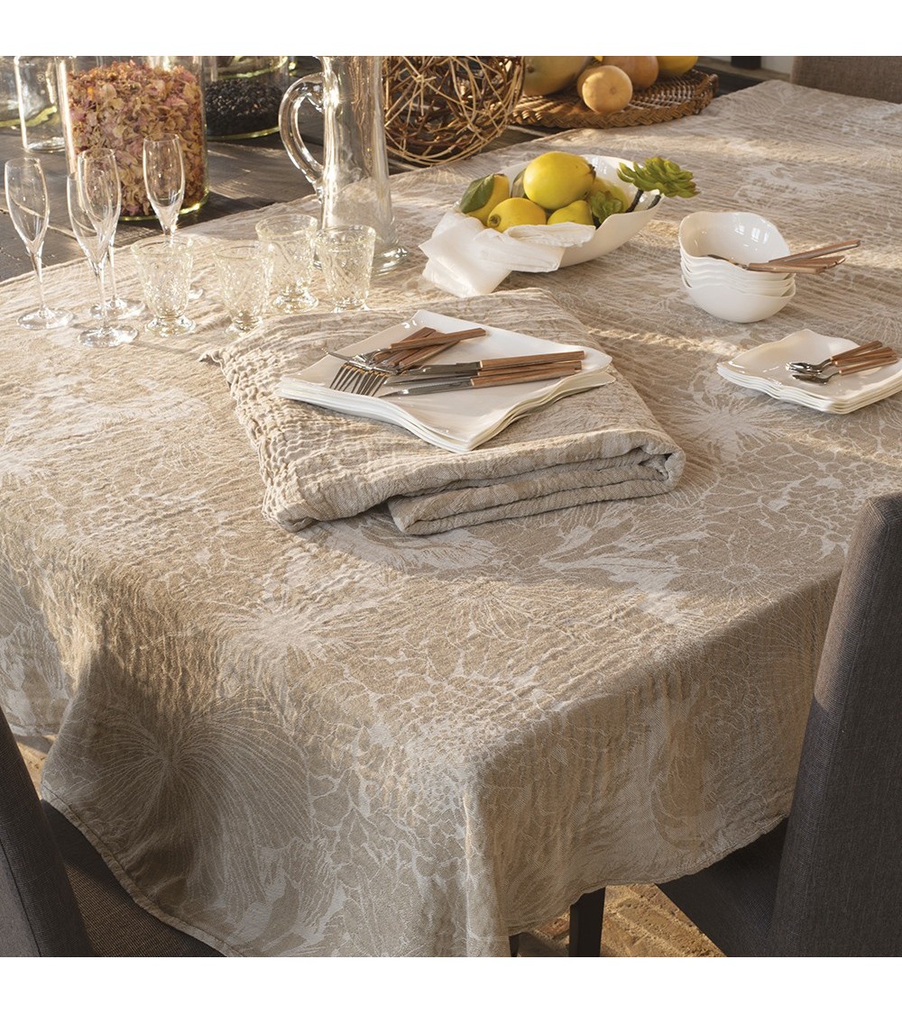 Nappe en voile de métis (50 pour cent coton/50 pour cent lin) damassée. Fabriquée en France dans les Vosges. Souple et légère, elle sèche très rapidement . Tissu prélavé pour plus de souplesse et un effet légèrement froissé permanent (repassage inutile). Du fait du lavage, les dimensions peuvent varier d'un produit à l'autre, les dimensions indiquées sont basées sur une moyenne des résultats observés. Matière - 50 pour cent lin / 50 pour cent coton. Couleur dominante - naturel. Taille (largeur x longueur) - 110X110. Traitement - lavé. Type - jacquard. Style - Fleurs et nature. Finitions - Composition - 50 pour cent lin 50 pour cent coton ; Réversible grâce à sa finition surjet bourdon. Grammage - . Entretien - Lavable à 30degrés; Reportez.vous toujours à la vignette avec les instructions de lavage sur le produit.Cet article est labellisé Vosges Terre Textile. Il a été tissé dans nos ateliers de Gérardmer - véritable linge fabriqué dans les Vosges !
