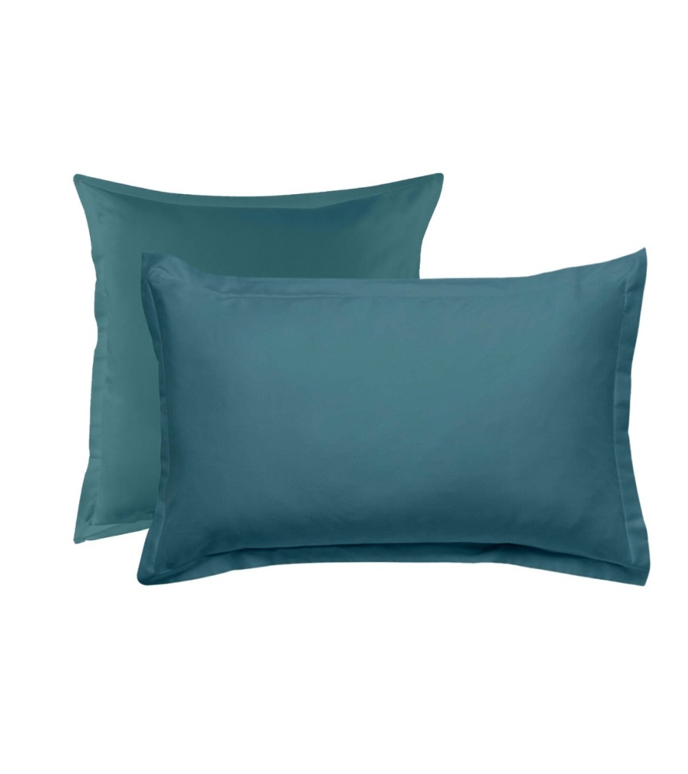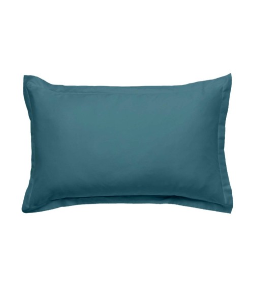 Taie d'oreiller en coton 57 fils unie bleu canard 50x70cm