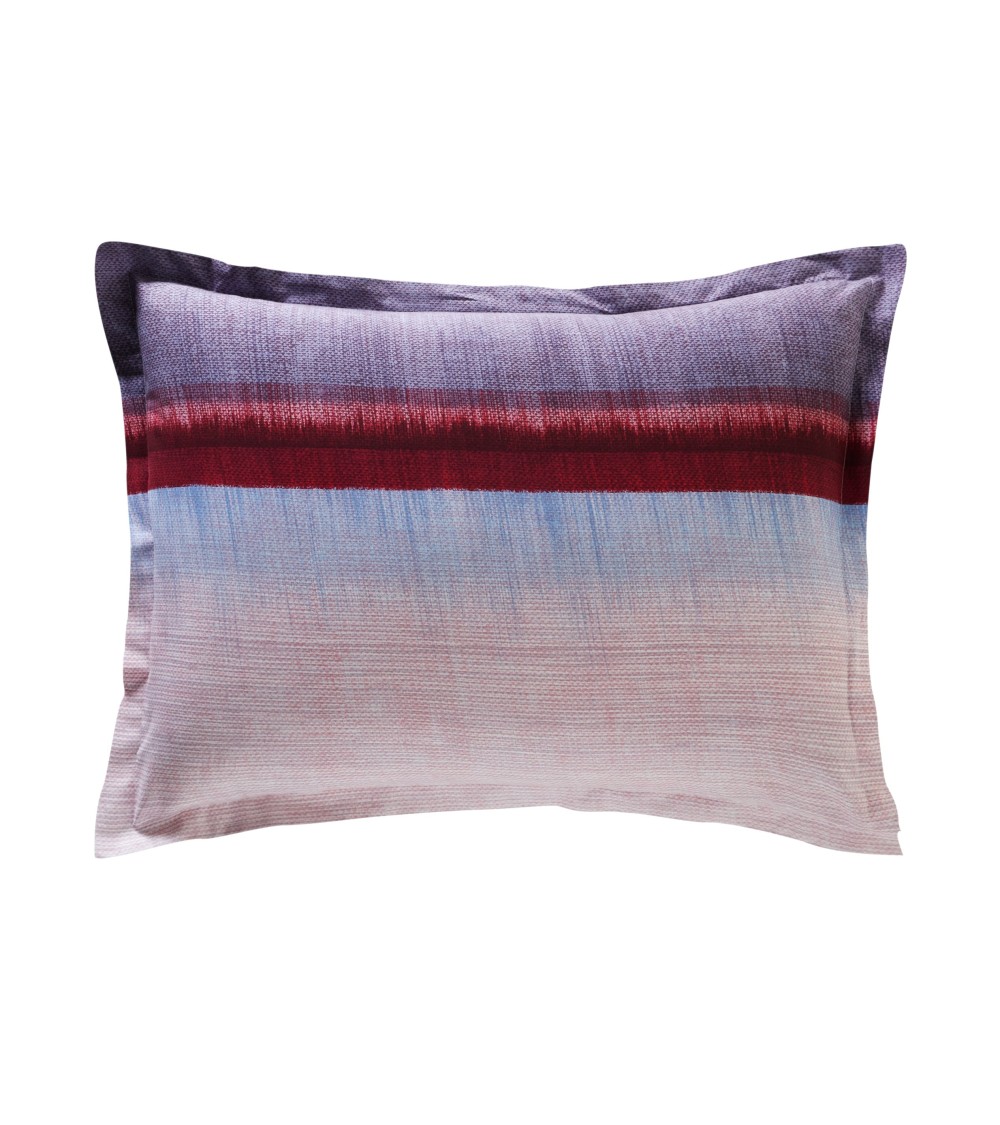 Appréciez lharmonie de teintes de cette Taie d'oreiller rectangulaire en coton multicolore. Une taie rectangulaire à volant plat de 3 cm au jeu de rayures graphiques tout en harmonie. Ce linge de lit imprimé est conçu dans un pur coton au tissage de 57 fils/cm2, lavable à 60 degré.