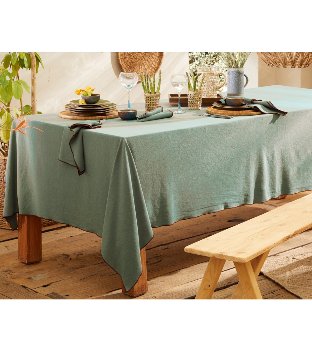 Cette nappe rectangulaire en pur coton lavé, finition point bourdon est réalisée en fil teint pour des couleurs plus durables, avec lavages à 60 degré. La finition lavée confère à ce linge de table une simplicité d'entretien, très appréciable au quotidien, car le repassage nest plus nécessaire.