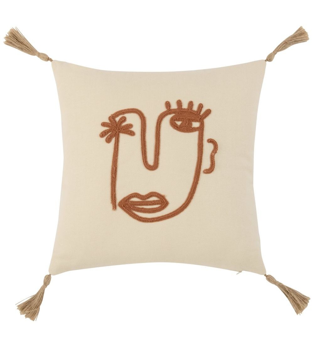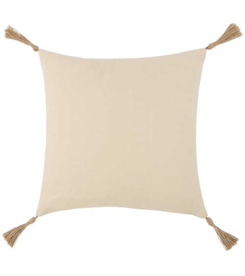 Housse de coussin en coton et jute motifs brodés écrus et marron 40x40