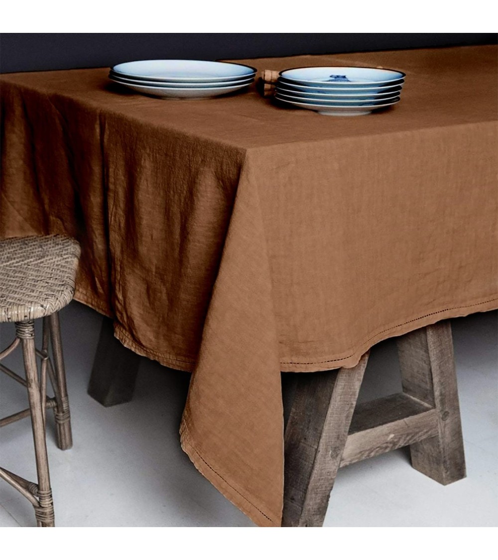 Le lin, avant qu'il ne soit le lin, était une plante herbacée, et bien qu'il soit une plante, il a choisi d'être une tige, car s'il avait été une graine, il ne s'appellerait plus lin mais graine de lin, et aurait fini en huile ou en farine de lin. Mais il a choisi d'être une tige et est devenu le lin, la plus ancienne fibre textile connue.Un bon linge se reconnaît de loin, car il tombe avec fierté protocolaire d'une table bien dressée quand il s'agit d'une nappe. Il est doux et distingué, et nous l'avons teint de belles couleurs pour l'installer dans nos cuisines comme nappe, serviettes, sets de table et torchons. Nappe en lin lavé. Fini avec un ourlet. Notre linge a subi un traitement de lavage et de teinture sur le vêtement qui lui apporte douceur et confort.