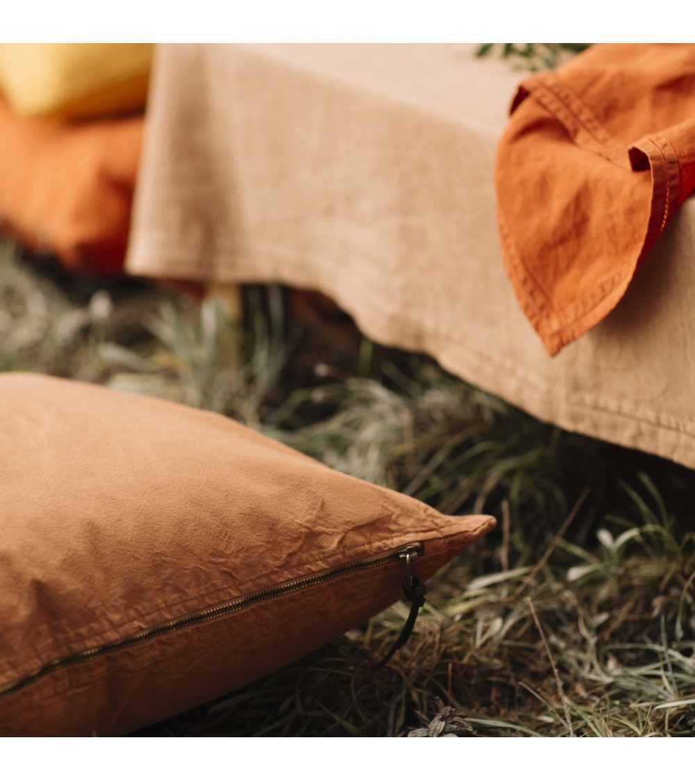 Le lin, avant qu'il ne soit le lin, était une plante herbacée, et bien qu'il soit une plante, il a choisi d'être une tige, car s'il avait été une graine, il ne s'appellerait plus lin mais graine de lin, et aurait fini en huile ou en farine de lin. Mais il a choisi d'être une tige et est devenu le lin, la plus ancienne fibre textile connue.Un bon linge se reconnaît de loin, car il tombe avec fierté protocolaire d'une table bien dressée quand il s'agit d'une nappe. Il est doux et distingué, et nous l'avons teint de belles couleurs pour l'installer dans nos cuisines comme nappe, serviettes, sets de table et torchons. Nappe en lin lavé. Fini avec un ourlet. Notre linge a subi un traitement de lavage et de teinture sur le vêtement qui lui apporte douceur et confort.