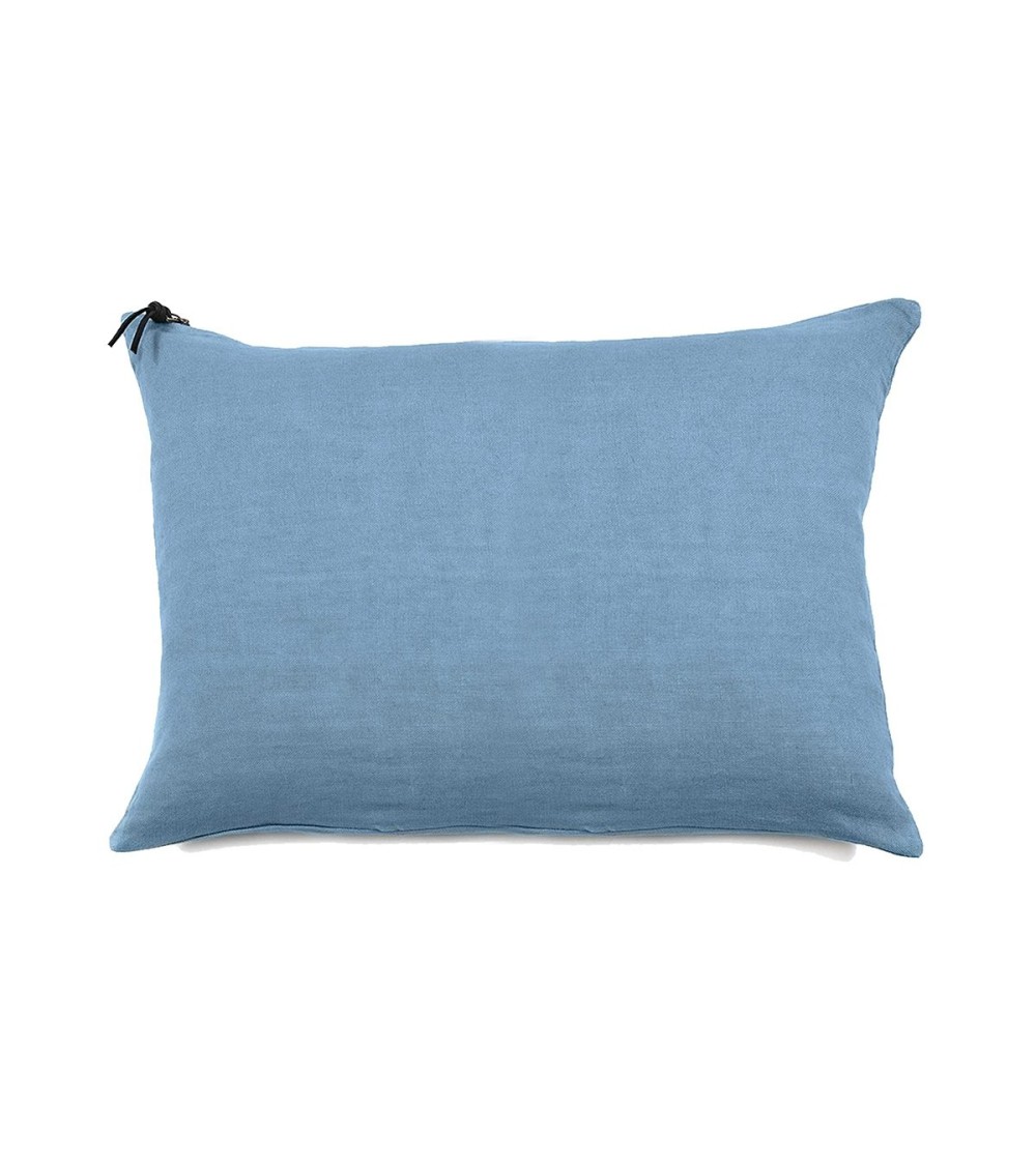 Le lin doit savoir tomber avec le poids, mais sans se départir de sa grâce et de sa fraîcheur, en acceptant la ride et en la revalorisant.Notre linge a été lavé à fond pour être doux et distingué, teint avec de belles couleurs et imposé comme notre étoile de base pour s'installer dans notre vie et notre maison. Coussin en lin lavé Bleu avec fermeture à glissière en métal vieil or et triple tirette à nuds en cuir. Le lin pèse 390 gr/m², ce qui lui assure une grande solidité et qualité.Notre linge a subi un traitement de lavage et de teinture sur le vêtement qui lui apporte douceur et confort.Fabriqué en Espagne.Rembourrée de plumes de canard.