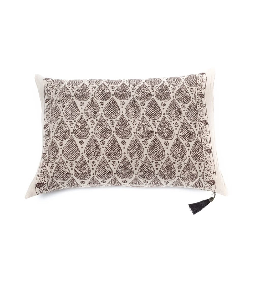 La géographie d'une goutte, agrandie et multipliée à l'infini, pour rappeler un aprèsmidi de pluie à Istanbul, peu avant le départ du train.Housse de coussin en lin lavé, avec un motif Damla Marron, imprimé à la main en deux couleurs et teint sur le vêtement, terminé par un gland original.Technique inspirée de l'ancien Block Print réalisé manuellement par sérigraphie.Notre linge a subi un traitement de lavage et de teinture sur le vêtement qui lui apporte douceur et confort.Fabriqué en Espagne.