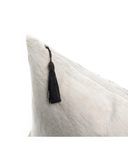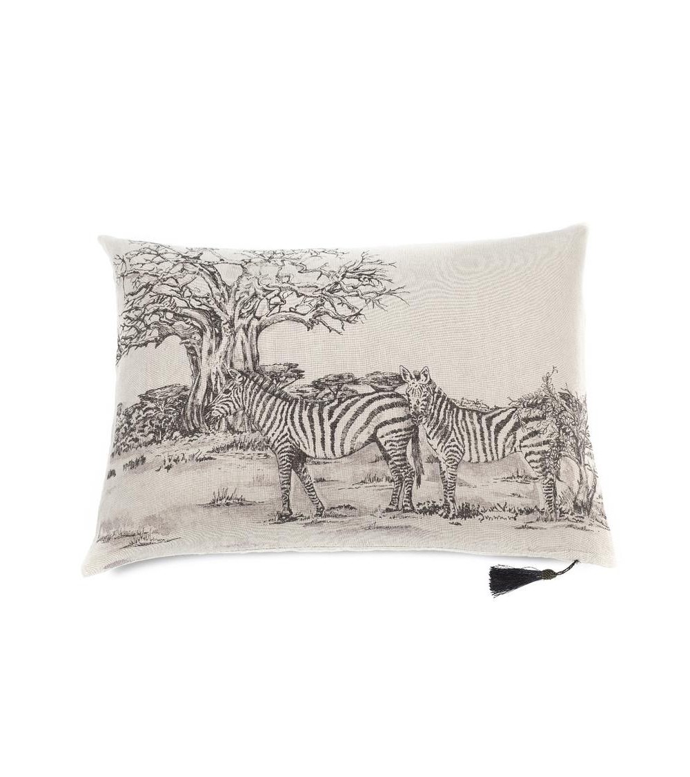 Coussin en lin pur lavé Toile de Jouy Zèbre Beige noir 50x70