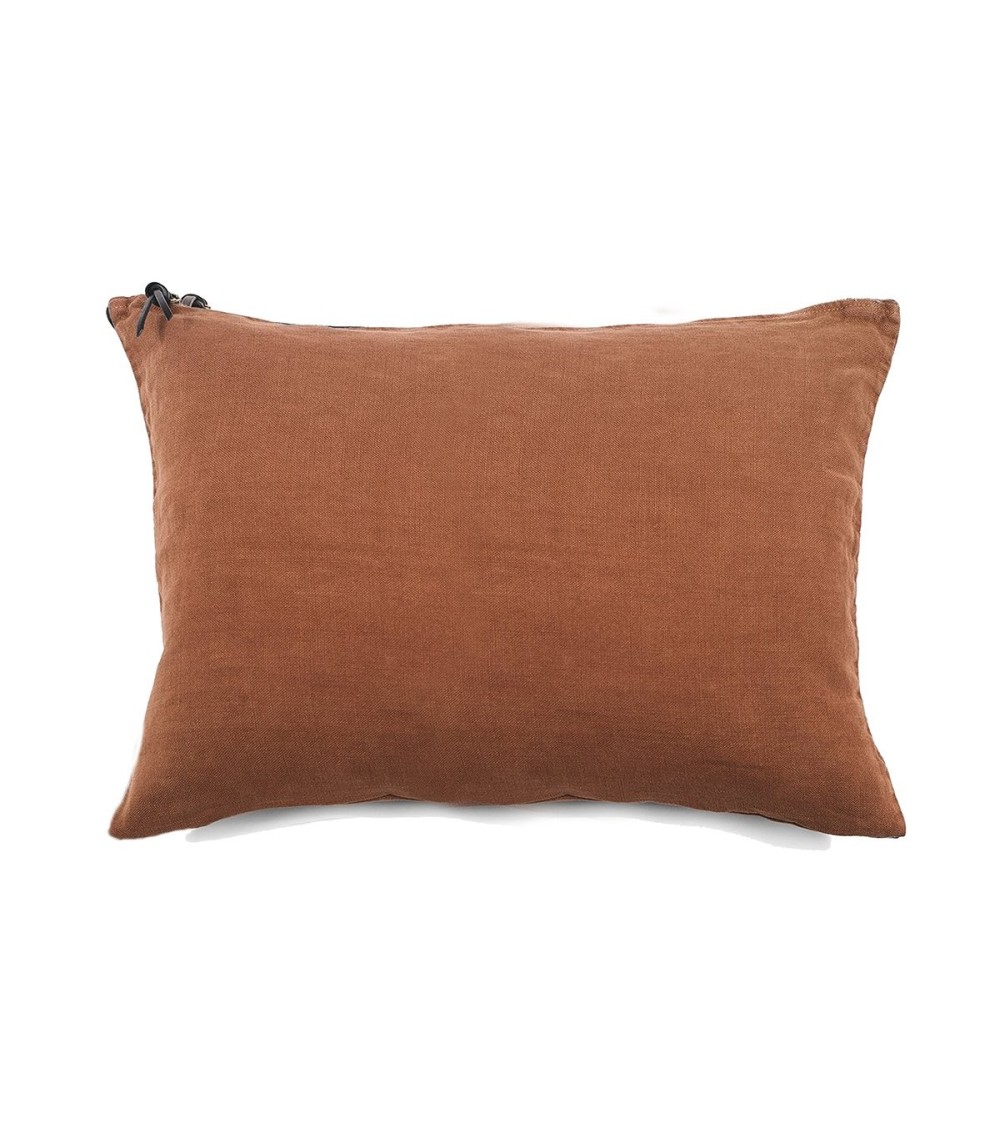 Le lin doit savoir tomber avec le poids, mais sans se départir de sa grâce et de sa fraîcheur, en acceptant la ride et en la revalorisant.Notre linge a été lavé à fond pour être doux et distingué, teint avec de belles couleurs et imposé comme notre étoile de base pour s'installer dans notre vie et notre maison. Coussin en lin lavé Terre cuite avec fermeture à glissière en métal vieil or et triple tirette à nuds en cuir. Le lin pèse 390 gr/m², ce qui lui assure une grande solidité et qualité.Notre linge a subi un traitement de lavage et de teinture sur le vêtement qui lui apporte douceur et confort.Fabriqué en Espagne.Rembourrée de plumes de canard.